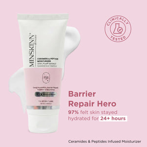 Ceramides are vital lipids that provide a robust barrier, helping to retain skin moisture. Our Ceramide Peptide Moisturizer is infused with these essential ingredients, promoting skin elasticity and hydration. When used regularly, it has anti aging property, helps to restore the skin's natural barrier, preventing dryness and irritation. Because of ceramides, your skin appears plumper and healthier, making them a must-have in any skincare routine.
